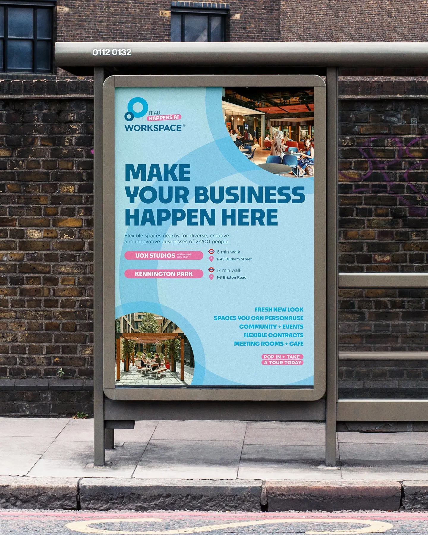 This campaign wasn’t a rebrand, but a brand evolution. By introducing a bold hit of pink and a catchy jingle, we injected new life and attitude into the existing brand world, giving Workspace a sense of personality and momentum that reflects the businesses within it.